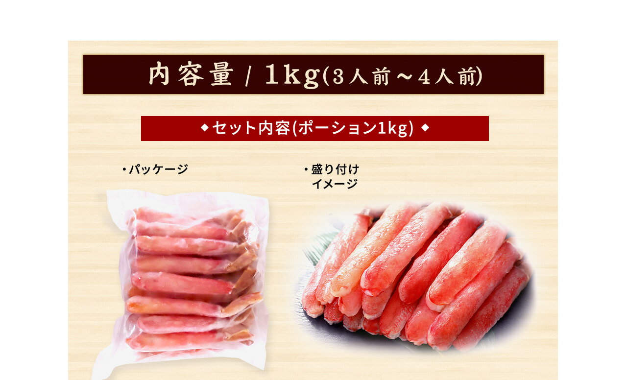 ※ かにしゃぶ かに雑炊 など ● 原 材 料 名 アメリカ・カナダ・ロシア産 ずわいがに ● 商 品 説 明 殻むき済のずわい蟹棒ポーション!調理しやすく食べやすい!後片付けも楽!数量限定の特価品です!1kgをこのオドロキ価格でご提供できるのはカニ専門の神戸CRABだけ! ● 発 送 方 法 冷凍便 <関連キーワード> かに カニ 蟹 ズワイ 送料無料 かにしゃぶ 海鮮 お歳暮 年末年始 生食 グルメ ギフト 贈答 プレゼント
