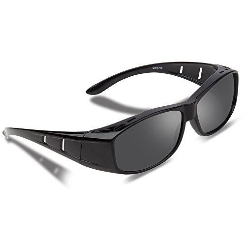 EwinR メガネの上から掛けられる オーバーサングラス メンズ レディース 兼用 偏光レンズ UV400 紫外線カット 花粉 サングラス 自転車/野球/ゴルフ/釣り最適 (ブラック)
